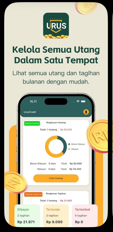 UrusCredit adalah aplikasi yang membantu Anda memahami kondisi keuangan pribadi dengan lebih jelas. Aplikasi ini dirancang untuk pengguna yang memiliki beberapa pinjaman sekaligus-mulai dari kartu kredit, pinjaman bank, cicilan online, hingga pinjaman pribadi. Dengan UrusCredit, seluruh informasi tersebut dapat dirapikan dalam satu tempat sehingga Anda dapat mengelola kewajiban bulanan dengan lebih nyaman.